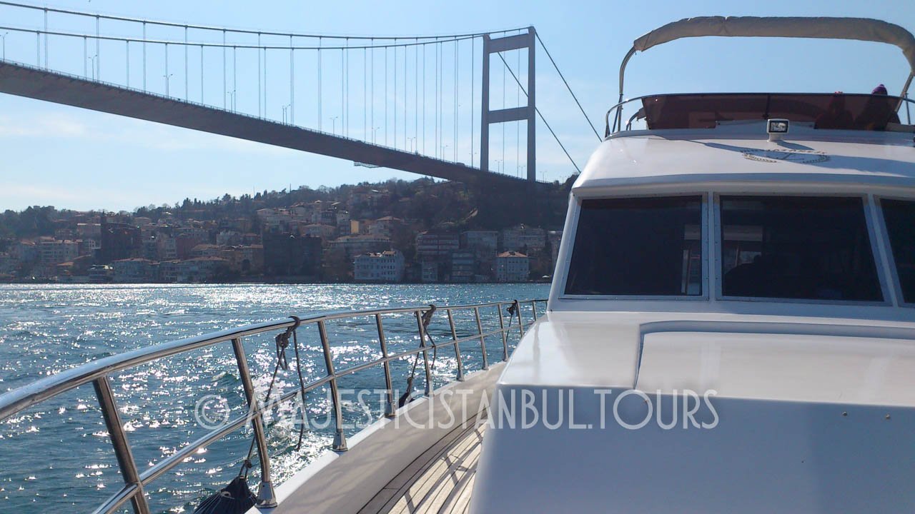 Bosphorus cruise tour is a luxury experience for your majestic Istanbul memories. Enjoy the beauties of the Bosphorus from your private motor yacht. See the glory of Istanbul from the motor yacht along the Bosphorus seperating Europe and Asia. An enjoyable possibility to take pictures of marble palaces of Dolmahce and Beylerbeyi, wooden waterside residences of Ottoman architecture besides modern residentials and luxurious apartments.